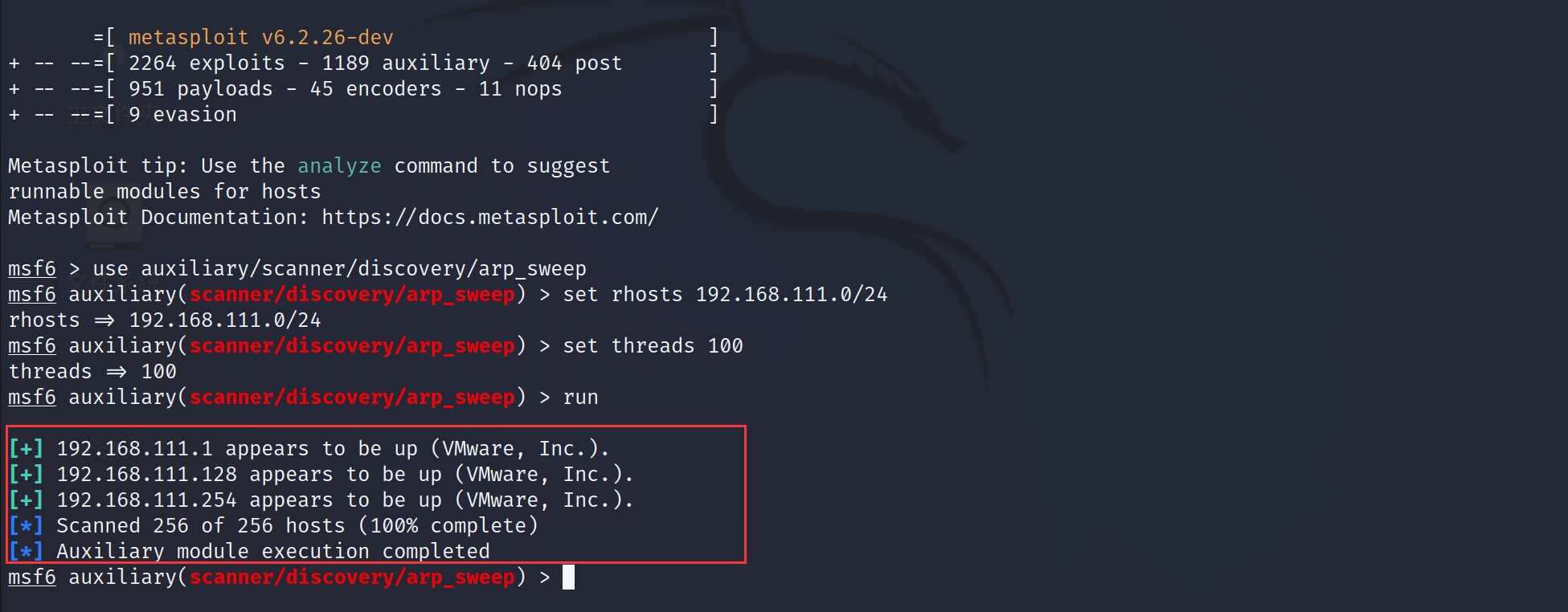 1 | set rhosts 192.168.111.0/24 |