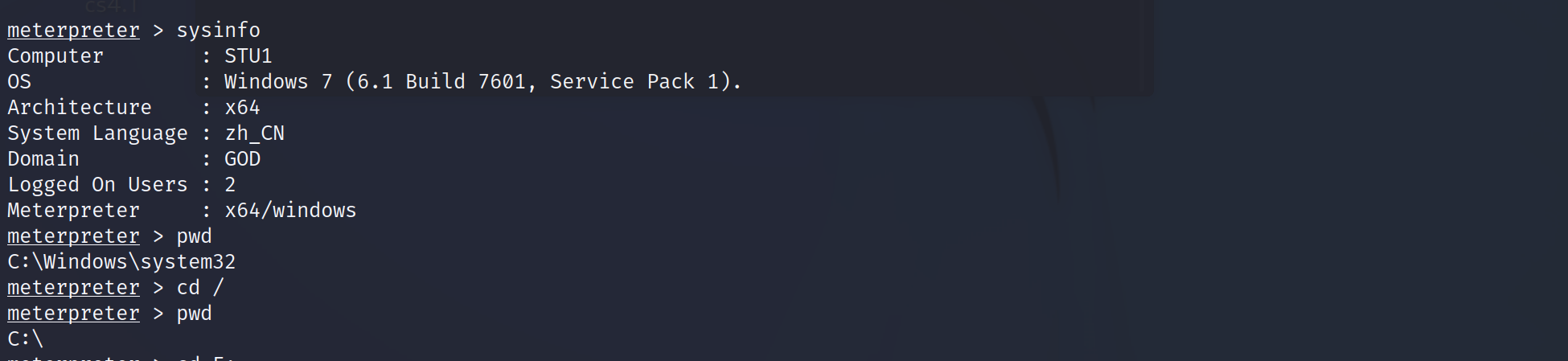 meterpreter 命令行通道已连接 cmd 命令行